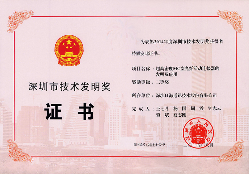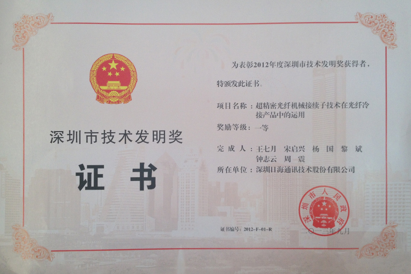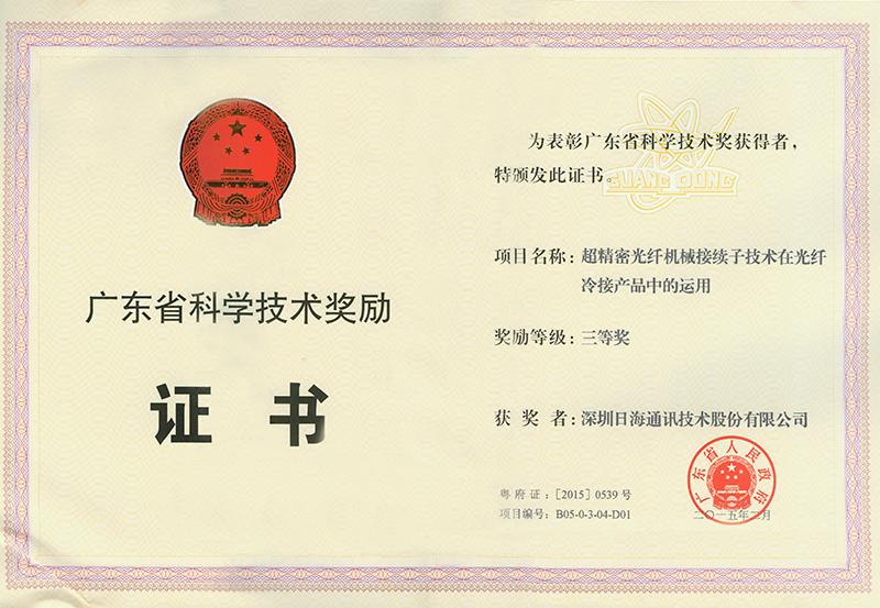 • 1月,宽带配线设备获“广东省重点新产品”荣誉证书